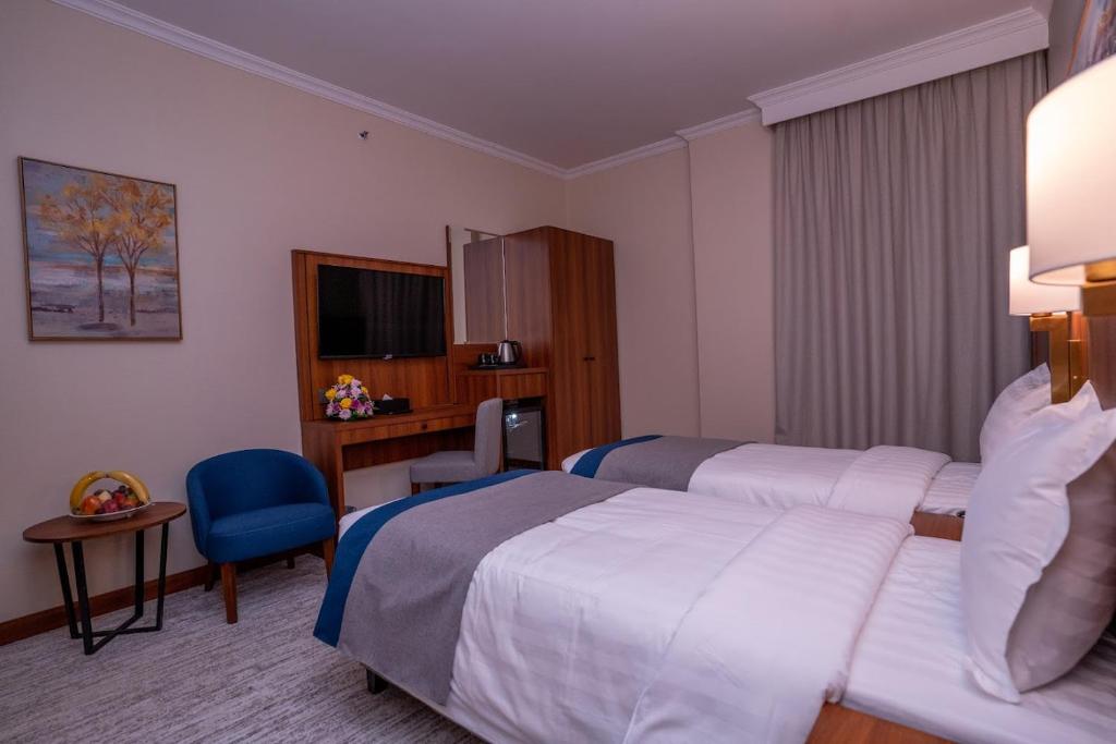 Die Unterkunft Nusk Al Hijrah mit 2 Sternen befindet sich in Medina, 3,6 km von Qubāʾ-Moschee und 6 km von Qiblatain Mosque entfernt. Zu den Einrichtungen dieser Unterkunft gehören ein Restaurant, ein Zimmerservice und eine rund um die Uhr besetzte Rezeption, zusammen mit kostenlosem WLAN. Die Unterkunft befindet sich 500 m von Prophetenmoschee und weniger als 400 m vom Zentrum der Stadt entfernt. In der Unterkunft Nusk Al Hijrah ist jedes Zimmer eingerichtet mit einem Schreibtisch, einem Flachbild-TV, einem eigenen Badezimmer, Bettwäsche und Handtüchern. Hier ist jedes Zimmer eingerichtet mit einem Safe – ausgewählte Zimmer sind ausgestattet mit Stadtblick. Die Gästezimmer bieten den Gästen einen Kühlschrank. Die Unterkunft Nusk Al Hijrah bietet ein als Buffet angebotenes oder kontinentales Frühstück. In der Unterkunft Businesscenter steht den Gästen ein Nusk Al Hijrah zur Verfügung. King Fahad Garden liegt 8 km von der Unterkunft Nusk Al Hijrah entfernt, während Mount Uhud 8,4 km entfernt ist. Der nächstgelegene Flughafen ist der Flughafen Medina, 13 km von der Unterkunft Nusk Al Hijrah entfernt. Alleinreisende schätzen die Lage besonders – sie haben diese mit 9,3 für einen Aufenthalt alleine bewertet.